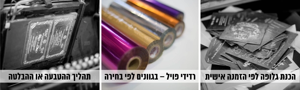 ניתן לעשות עוד שדרוגים: שירותי הטבעת חום והבלטות או הדפסה פנימית או חיצונית לבחירתכם. יהפוך את המעטפה לממותגת ואישית בכול צורה. זה יכול להתאים להזמנות לאירועים פרטיים או גם מוצר פרסומי מושלם לעסקים.